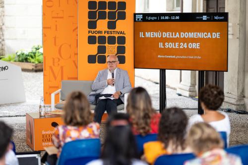 La Domenica, l’inserto culturale del Sole 24 Ore - dal 1983 un unicum nel panorama italiano con il suo sguardo a cavallo tra il classico e il contemporaneo - sarà presente al Fuori Festival con il format “Il Menù della Domenica”. Marco Carminati, caporedattore dell’inserto, racconterà come nasce un numero della Domenica e commenterà con i partecipanti alcuni pezzi tratti dall’ultimo numero in edicola rivolto al futuro e ai giovani. L’appuntamento sarà preceduto da un concerto a cura del Conservatorio di Trento e a seguire alcune novità a tema letterario.